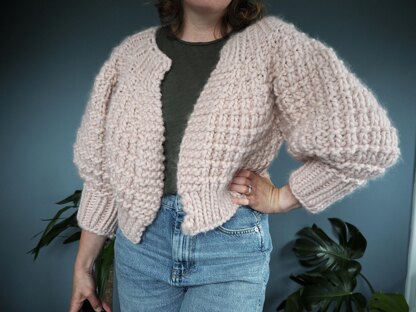 A chunky knit bomber jacket worked from the top down on circular needles, in my all time favourite stitch - thermal stitch! The Blea Bomber features a ribbed collar, slightly ballooned sleeves and has a oversized comfy fit. This makes for a comfy, textured cardigan, perfect for layering all year round.