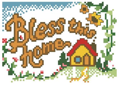 Designed by: Donna Kooler. Celebrate your home and family with this thoughtfully created cross stitch sign that brightens your living space with heartwarming charm. An original by Donna Kooler from the 1970's, it's timeless and cheerful.
