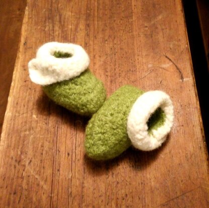 These felted booties are a great quick gift to whip up for your loved ones. Felting is fun and easy, you may get hooked watching your crocheted items change after a whirl in the washing machine.