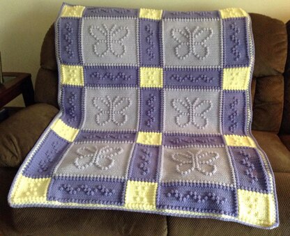 Suggested yarn with color chart and amounts used included with pattern.