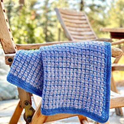This is a small/medium sized lap blanket that works up in a flash. I’ve made mine with baby weight yarn so it is soft and light. It would also double as a baby blanket! This pattern requires two different colours to really make it pop. This stitch is worked up in multiples of 3+1 so the pattern can be adjusted in size by increasing/decreasing in multiples of 3+1.