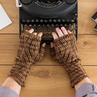 Ribbing forms herringbones along the length of these unisex mitts. They’re warm enough to wear in a chilly garret, yet sophisticated enough for a stroll down a London street.