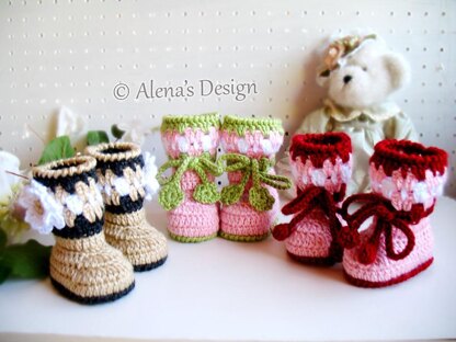 Would you like your baby to have more style? Yes, as a proud parent you most certainly would! You are welcome to make my Crochet Baby Booties which are 100% acrylic material for both warmth and softness. Contrasting color patterns together with flower/ bow make this booties look very adorable and cute while keeping your child’s feet nice and toasty. Includes PATTERN for the Crochet Baby Booties in three different styles and four sizes: