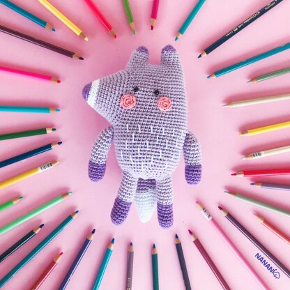 MATERIALS I used Superfine Rainbow Cotton 8/4 yarn, but you could use a similar quality yarn to obtain a similar size in the colors below or the color of your choice. • A) Pastel purple (Main Color- MC) • B) Purple or dark purple • C) White • D) Pink • Polyester fiberfill stuffing • Rattle (optional)