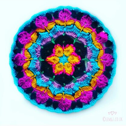 A free 2-in-1 mandala pattern worked around a central African Flower motif - make a large or a smaller mini sized mandala using traditional crochet stitches with fun textured stitches.