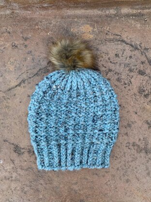 --Please note this listing is for a loom knit pattern -- Beginner friendly! Loom knit this warm Blue Mesa Beanie for yourself or a friend! If you know how to e-wrap knit and how to purl, you can make this great hat. The Blue Mesa Beanie is knit on a 3/4” gauge, 40-peg round loom. The Knitting Board's Adjustable Multi-Knit loom was used for the sample. This hat uses approximately 85 yards of a super bulky yarn. James C. Brett’s Rustic Mega Chunky yarn in the CS21 colorway was used in the sample. This hat is easy to knit and can be created in no time at all! The pattern is suitable for a novice loom knitter.