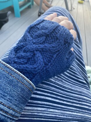 Inspired by the BLUE SKY of Ocracoke Island, North Carolina, these mitts are close fitting, warm and perfect for turning pages of your book out on the deck this fall. They’re worked from the wrist cuff up. You’ll incorporate simple cables for a beautiful design that flows right from the ribbing on the wrist cuffs and into the fingertip ribbing. You’ll finish the thumb with ribbing, or leave it as a thumb hole- your choice. There’s a chart for the cable design as well as written instructions.