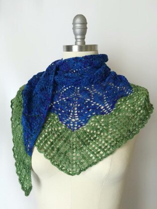 A center-out, half-hexagon lace shawl inspired by the fields of wild bluebonnets that blanket Texas each spring