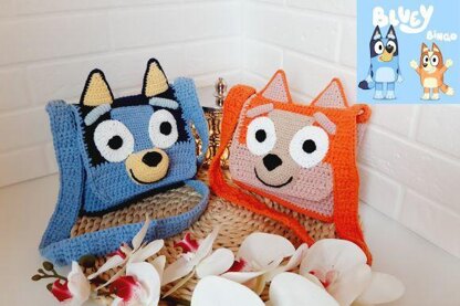 This original Bluey or Bingo small bag. If your little one loves to watch Blues and Bingo, he will love these little shoulder bags. They make a great gift for your little one! These shoulder bags are crocheted from semi-cotton. Instructions include PDF - format + video for Bluey and Bingo! Bag size width 19 cm ( 7.48 inches) height without ears 14 cm ( 5.51 inches) Bags can be crocheted with both semi-cotton and plush yarn, just pick up the hook for the yarn. You can tie a bag very quickly and easily.