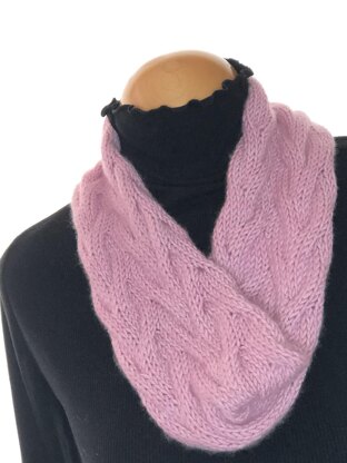 Blushing Lillian is an easy cabled cowl with a simple cable. One cable is worked on the right side and the second one is worked on the wrong side.
