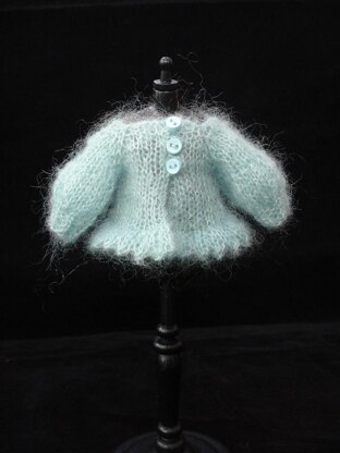 Here is a short and sweet little mohair cardigan with a cute picot hem. Knits up quickly with lace weight mohair.