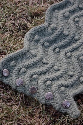 Carefully placed increases and decreases create the scalloped waving background for the bobbles and the fabric manipulation makes for a denser and warmer cowl.