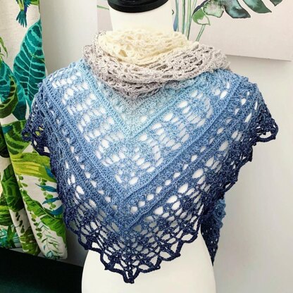 The shawl is easily adapted and can be made in any weight yarn by adding or decreasing the pattern repeats and changing hook size.