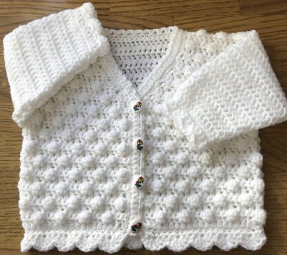 This pattern is for a bobble v-neck cardigan for a baby or child. There are two variations for the back of this cardigan, one plain and one with a full bobble pattern which matches the fronts. You may like to use the full bobble back for the older child and the plain version for the younger or why not make two, one of each. Please note that by making the back with the full bobble pattern may use more yarn, so do please bear this in mind if choosing this version.