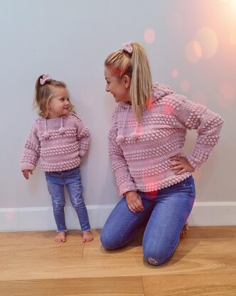 The pattern uses a combination of popcorn stitches with dc's to make a striking textured design that looks gorgeous on. Be one of a kind and make Mum and Daughter unique and adorable matching hoodies.
