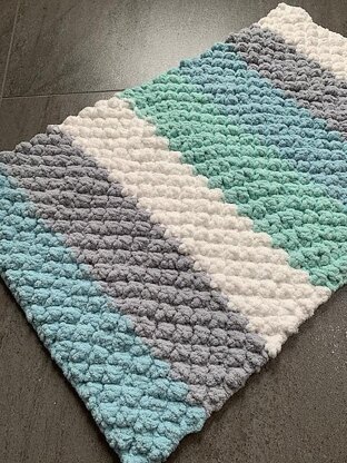 This bath mat knits up quickly and is a fun bobbly design. The yarn comes in a range of colours and is polyester so washes well.