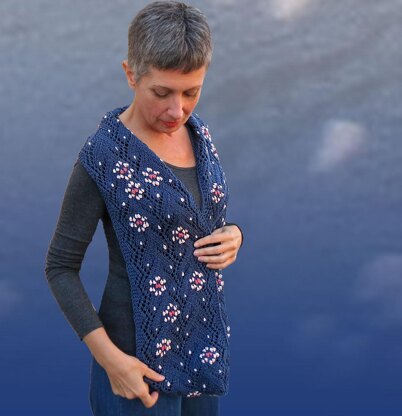 Boccioli (blossoms in Italian) is an infinity scarf worked sideways to the desired length, followed by some grafting. Its boldest feature is in its simple lacework that’s enlivened by small bobbles in a contrasting, yet delicate, color. The lace pattern resembles the leaves of Italian heirloom zucchini, with flowers on the top of some branches, each one presented in different lengths to mimic a natural flowering pattern. The design has intentionally a vintage feel, reminiscent of old-hand embroidery with its small bobbles integrated in the lace stitches and the use of a color choice with mild contrasts.