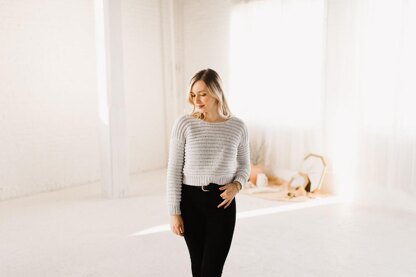 The Body Language Sweater is a simple, drop-shoulder sweater using basic stitches - just the single crochet and half-double crochet stitch! - perfect for a beginner. It’s got a boxy fit with basic shaping around the front + back neckline and a cinching effect at the bottom and on the sleeve cuffs from using a smaller hook for the ribbing which lends to a really modern, flattering fit on all shapes and sizes.