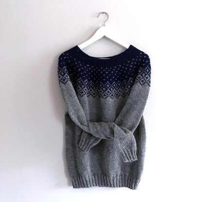 Size S: 400g of base colour (bc) and 70 g of contrast colour (cc). Size M: 450 g of base colour and 100 g of contrast colour. Size L: 500 g of base colour and 100 g of contrast colour. Size XL: 550 g of base colour and 150g of contrast colour.