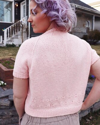 Knit top down, in the round, and seamless, this pattern is written in six sizes – S (M, L, XL, 2XL 3XL). It is suggested that you highlight your size, so you know which stitch count to follow. Model pictured is wearing the size M and is 5’7”, 145 pounds and has a bust of 36.5” in circumference, for reference. This pattern is designed with 2-4” of positive ease written in.