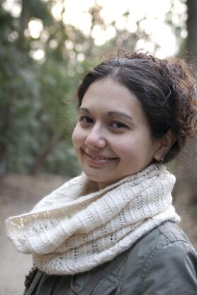Bone China is a lacy cowl/snood knit in a light soft baby alpaca. The pattern name comes from the creamy color of the yarn. It reminded me of beautiful porcelain cups decorated with delicate arabesque patterns.