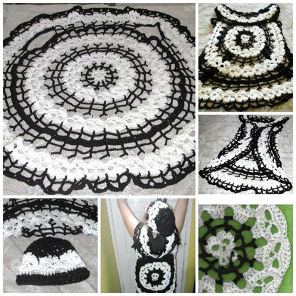 Bone DanceRetro Style Circle VestThis Pattern Is A Collaboration BetweenLaurie Kahn of Spider Mambo Designsand Janie Laswell of Purday ThangsSize approximately 43 inches in diameterarmholes 9 inches wideback measurement between armholes 16 inchesLength from shoulder to longest point on round hem 34 inches laid flat. Will hang longer whenworn