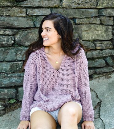 The Bonfire Snuggles Hoodie was created to capture the warmth and comfort of wintertime romance. Made with bulky yarn, its thick bottom-up construction embraces you while the front pocket is a perfect place to keep your hands warm. The very functional hood is cinchable and features ornate tassels on the string, making this a pattern you will be sure to fall in love with.