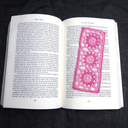 A bookmark that is easier to make than you might think at first glance (but for an intermediate level anyway). The stitches used are the classic ones (sc, dc…). The flower was adapted from a 1920's shirt collar design. The border is a design that, in addition to looking good, serves to make the sides of the bookmark straight and stiffer. This bookmark has been made in two shades of pink for a bright, spring-like look, but it also looks great in a solid color. It is essential to "block" the bookmark once finished and moisten it to give it a perfect shape. The work here is in #10 cotton but can also be made with #20 cotton for a more lacy look. If you don't want to buy several whole balls, you can buy skeins of embroidery thread of equivalent thickness (n°10 cotton). The PDF tutorial includes a main diagram and 6 detail diagrams as well as a step-by-step explanation with 43 photos.