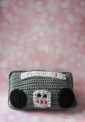 This simple, rag doll style amigurumi pattern is reminiscent of a late 1970s to early 1990s tape cassette boom box.