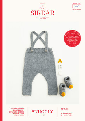 Bootees & Dungarees in Sirdar Snuggly 4 Ply - 5438 - Downloadable PDF is a Intermediate Knitting pattern by Sirdar, available as a Downloadable PDF and includes instructions in English. Super fun to make, this pattern could be your next masterpiece!