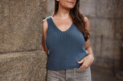 A sister pattern to the knit Streamline Tank, this summer staple features wide straps and cascading faux knit ribbed detailing. It pairs effortlessly with everything from high-waisted sailor pants to cutoffs!