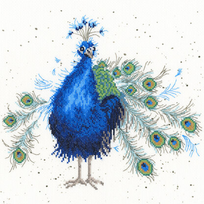 This handsome strutting Peacock design from Hannah Dale is worked on 14 hpi speckled Aida in stranded cotton. Full cross stitch and back stitch are used. Your kit includes: colour chart, 14 count speckled Aida fabric, DMC threads and needle.