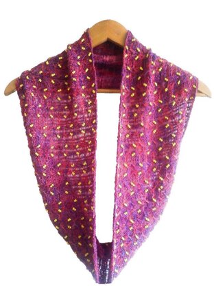Bougainvillea is a ircular cowl with a very easy cable pattern. The beads are placed as you knit. Ist a great weekend Project and you can memorize the instructions easily.