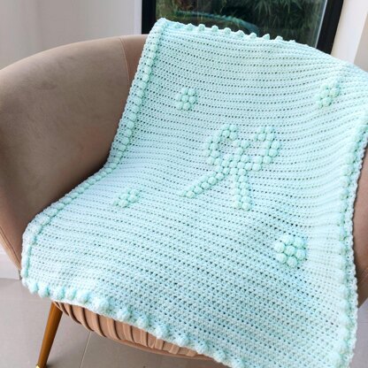 Aran baby blanket crochet pattern, a beautiful textured pattern with a pretty bow and flower design. Fabulously soft, warm and cuddly. Very quick to work up on 5mm hook with Aran yarn. Gorgeous blanket featuring bobble bow & flowers giving stunning results. The soft & cosy blanket would make a fabulous new baby gift, baby shower gift or just to keep your new baby warm &cosy. Crocheted with Baby Mint Aran making it a great neutral blanket for either boys or girls or choose any colour you wish of your choice