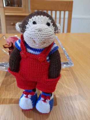 This pattern contains full instructions for knitting and finishing off a little monkey boy with a patterned sweater and shorts. Included are 2 options for the sweater - the first uses stranded/Fair Isle technique and 2 colours on each row, the second uses slipped stitches and rows of alternating colour to create the pattern.