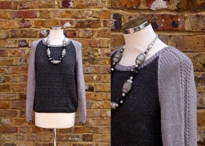 The pattern includes notes for two versions. The first version as shown on the front cover includes contrast colored sleeves and neck trim, while the second is worked in a single shade.