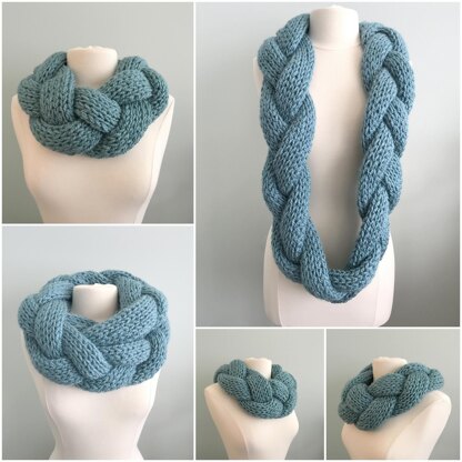 Trending head-turning Braided Giant Cowl. This humungous cowl is a perfect fashion accessory for blustery and cold days. The thick braid has many layers to hold in the warmth. You can make it short or make it long to wear double.
