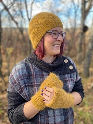 Fall is in the air and we are fully into toque season here in Northern Alberta! These squishy soft hat and fingerless mittens are the perfect answer for the chilly mornings and evenings and I have been using them a lot for walking the dogs!!