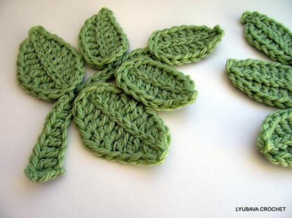 Use a smaller size crochet hook and thinner yarn to get a smaller size branch of leaves.