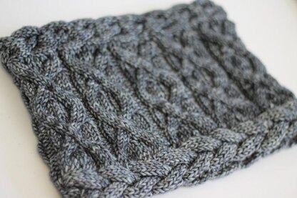This pattern makes use of the kitchener stitch (grafting), provisional cast-on, and chart reading. Rated for intermediate knitters for cowl construction and multiple cables.