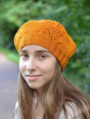 The Brazel hat is a traditional beret worked in the round from the brim and up. It features a lace and bobble panel which continues partway into the crown. It is a timeless, feminine design with a contemporary twist.