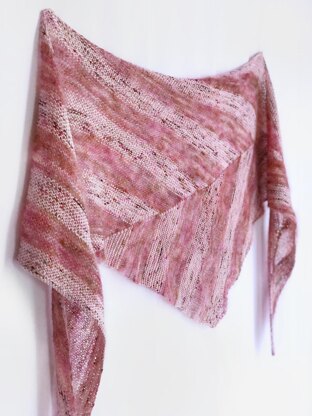 Simple stripes and a bit of intarsia, paired with varying fibers and weights in the same colorway, make this shawl a tone-on-tone textural delight that is relaxing to knit and easy to wear.