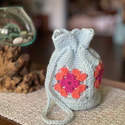 Step out in style with this cute little granny square drawstring bag. The Briar Rose bag carries all your small essentials and adds a pop of fun color to any outfit. Featuring traditional granny squares, this crochet pouch bag has a simple construction and is perfect for using yarn from your stash.
