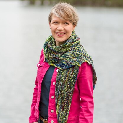 Berlin in Winter is colder than most other big German cities – when travelling there, a big, cozy shawlette like this will come in handy! The beautiful colors are reminiscent of bright city lights in dark winter nights. The shape of the shawlette is an asymmetrical, long triangle, formed by rows that are getting longer and longer as you go. They are worked in different simple, but very effective patterns that make them look a little like a skyline of tall houses. These skyscrapers are not built with bricks, but concrete and steel – hence the name, "Brickless". And also: No more bricks in the wall that used to divide Berlin.