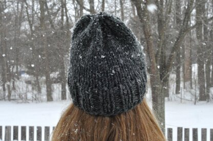 The chunky and cozy Briley Beanie is a quick and easy knit, and features a ribbed brim with a slight slouch on top.