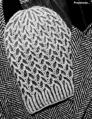 One easy, fun, comfy, cozy, trendy, unisex, warm and grateful fall / winter / early spring beanie. A simply brioche motive “weaves” zig zag (like tweed) texture and snowflake crown. For this prototype I used shades of gray, but you can choose your favorite, cheerful color combination.Needles:  * 16” (40cm) circular needle (for hats) or 4+1 DPN’s, in US 4 / 3,5mm (for brim) and US 7 / 4,5mm;  * US 7 / 4,5mm DPN’s (4+1 double pointed needles) for crown;  * tapestry needle for weaving in ends;Yarns: shown beanie is made with budget friendly yarns, in total weight ~ 50gr:  a) MC (main color, on front side) approx. 30gr of Ice yarns Master alpaca (175m~190 yds/50gr) in light gray (MC yarn is thicker then CC yarn); you can use any DK weight yarn;  b) CC (contrast color, on back side) approx. 20gr of Nako Angora elite trend, self striped with long color, in shades of gray (moher, 490m~530yds/100gr); you can use also some DK weight yarn;