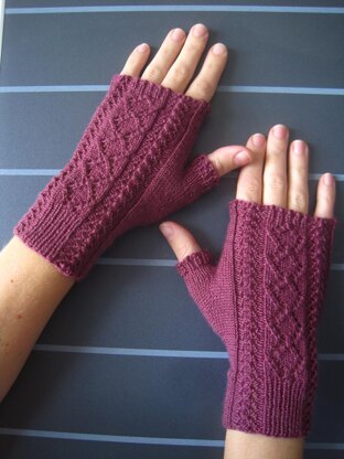 Keep your hands warm and stylish with these pretty mitts which sport a pretty lace diamond pattern