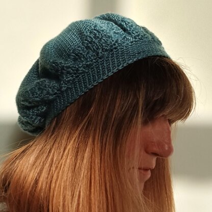 This is a beginner level pattern creates a 60s style beret working double crochets in rounds for the main. The pattern then uses clusters of trebles and decreases to create a puffed look at the fullest part of the beret.