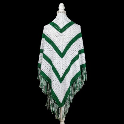 Le châle mesure 105x210cm. Les dimensions peuvent varier en fonction du choix de votre fil et de votre manière de crocheter.