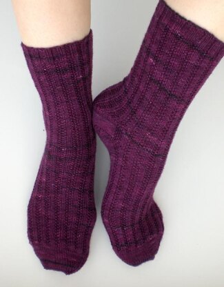 Recently I discovered a new heel variation and made myself a pair using a simple knit-purl-pattern. Maybe you want some for yourself, so I wrote down my notes. This is not a real “pattern” but rather notes how to implement the “broken rib” pattern and how to work the heel. You will also find a size chart.